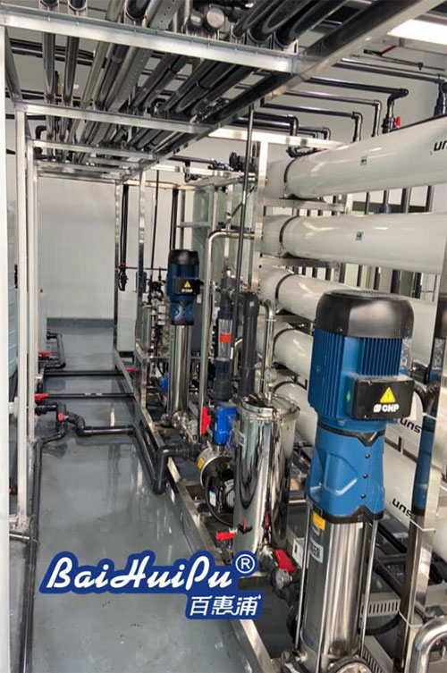 純水設備采用先進的反滲透膜技術(shù),通過施加一定的壓力,使水分子和離子態(tài)的礦物質(zhì)元素通過反滲透膜,而溶解在水中的絕大部分無機鹽、有機物以及細菌、病毒等則被截留,從而實現(xiàn)純凈水和濃縮水的分離。